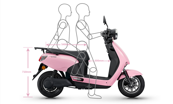 710mm低鞍座離地高度,讓女生雙腳著地更輕松540mm長(zhǎng)鞍座,可滿(mǎn)足雙人長(zhǎng)時(shí)間輕松騎乘 前座峰弧度防滑設(shè)計(jì),騎乘更安穩(wěn)300mm寬敞檔距,物件可輕松置放,雙腳擱放活動(dòng)自如