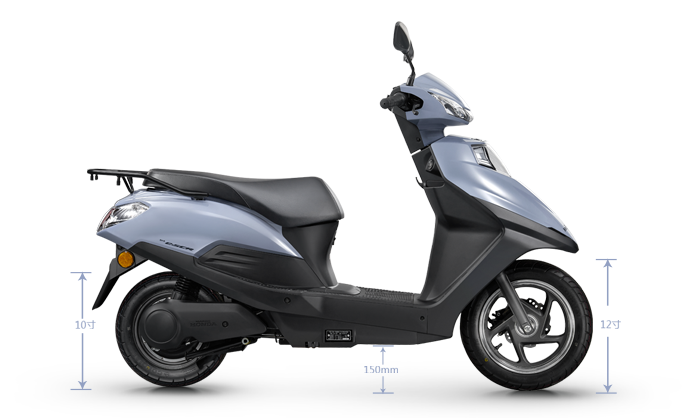 12寸前輪與10寸后輪完美配合,離地高度達150mm,通過性好,輕松通過門檻石等路面障礙。同時,大半徑前輪,有效保障顛簸路和碎石路的舒適性