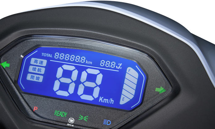 兼容60V/20Ah、60V/32Ah兩種不同容量電池組,滿足用戶不同續(xù)航需求,同時還可滿足高速、中速(續(xù)航)、低速(爬坡)三檔位變速需求(注:續(xù)航里程因電量、氣溫、路況、載重和駕駛習(xí)慣不同會有較大差異上述續(xù)航數(shù)據(jù)為采用60V/32Ah電池,騎行者體重75kg,25km/h勻速行駛,環(huán)境溫度25℃)