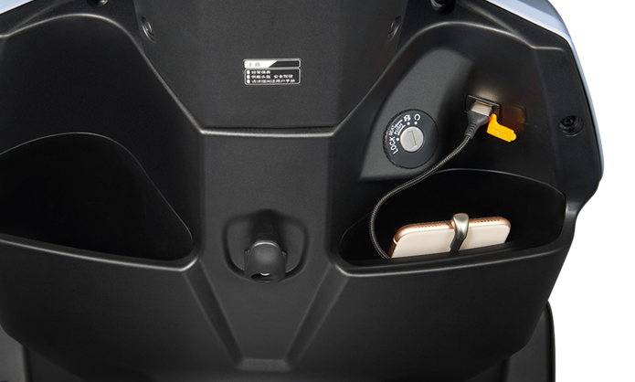USB充電口可隨時隨地給手機充電,開放式前置物箱則可置放各種隨身小物件,大大提升使用便利性(注:1200W車型標(biāo)配USB充電功能)