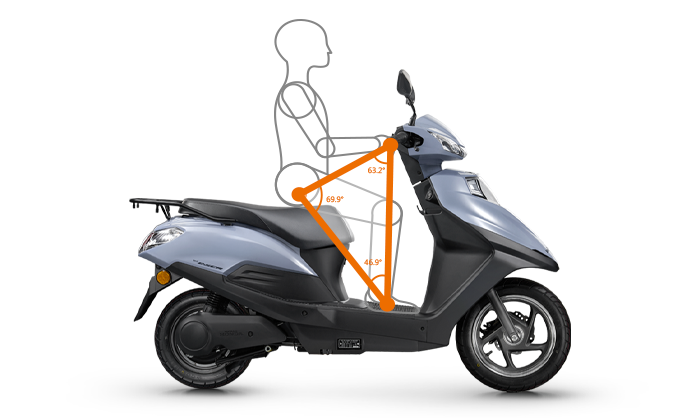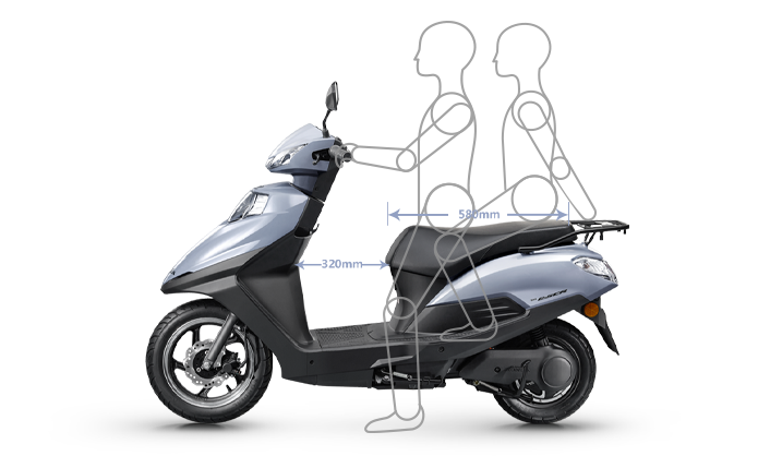 580mm超長鞍座,防滑設(shè)計,可滿足長時間輕松騎乘;320mm寬敞檔距,物件輕松置放,雙腳活動自如