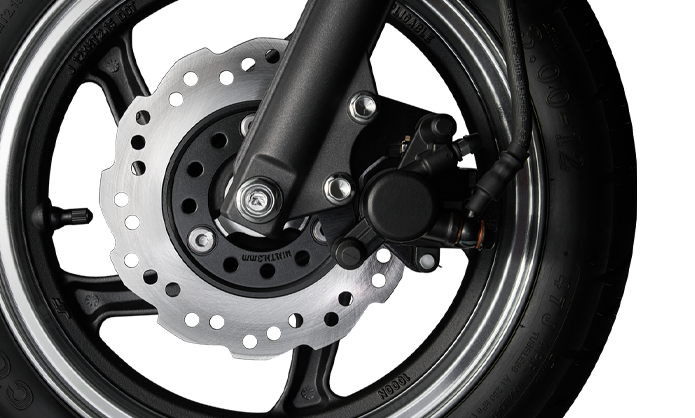五羊-本田高端摩托車級別的Φ180mm+3.5mm厚制動盤耐久更安全,75公斤30km/h條件下,制動距離<5m,比國家標(biāo)準(zhǔn)縮短2.1米 讓你遠離危險。(注:以上為試驗場實際測試數(shù)據(jù))