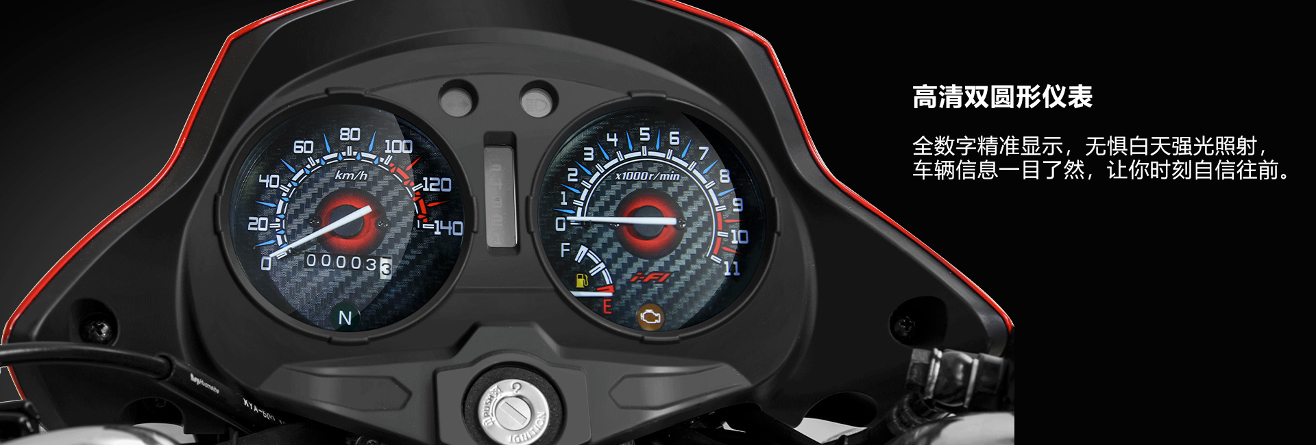 明亮前大燈、安全尾燈、高清雙圓形儀表