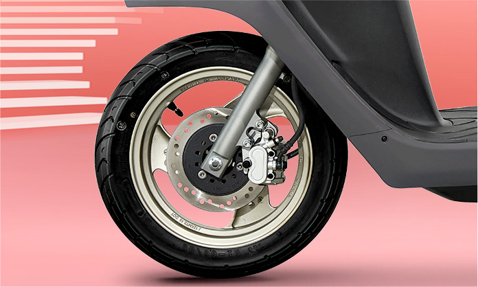 前輪配置12英寸大直徑的無(wú)內(nèi)胎輪胎, 后輪采用100mm寬的輪胎,大幅度地提高了附著力,增加了轉(zhuǎn)彎時(shí)的穩(wěn)定性,使行駛安全舒適。